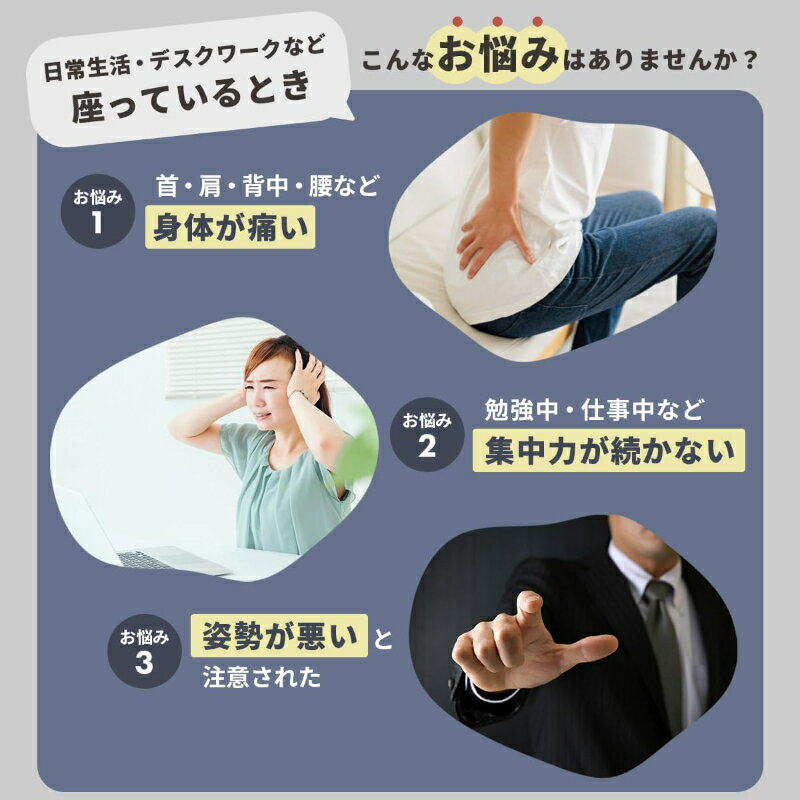 特に「長時間座っても腰が痛くならない」「自然と背筋が伸びる」という声が多く、オフィスワーカーや学生、在宅勤務の方に支持されています。