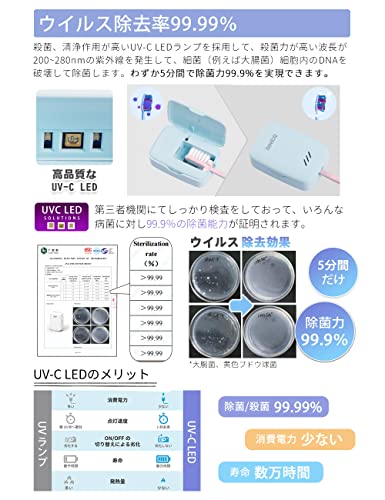 Iseebizの歯ブラシ除菌キャップは、「UV-CLED」という光を使った除菌が大きな特徴です。