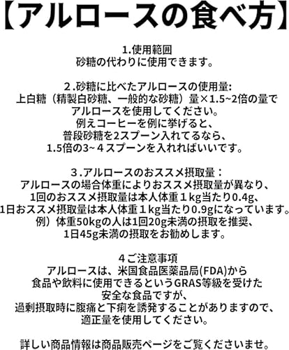 ただし、アルロースは大量に摂取すると一部の人々に胃腸の不快感を引き起こすことがあるため、摂取量には注意が必要です。